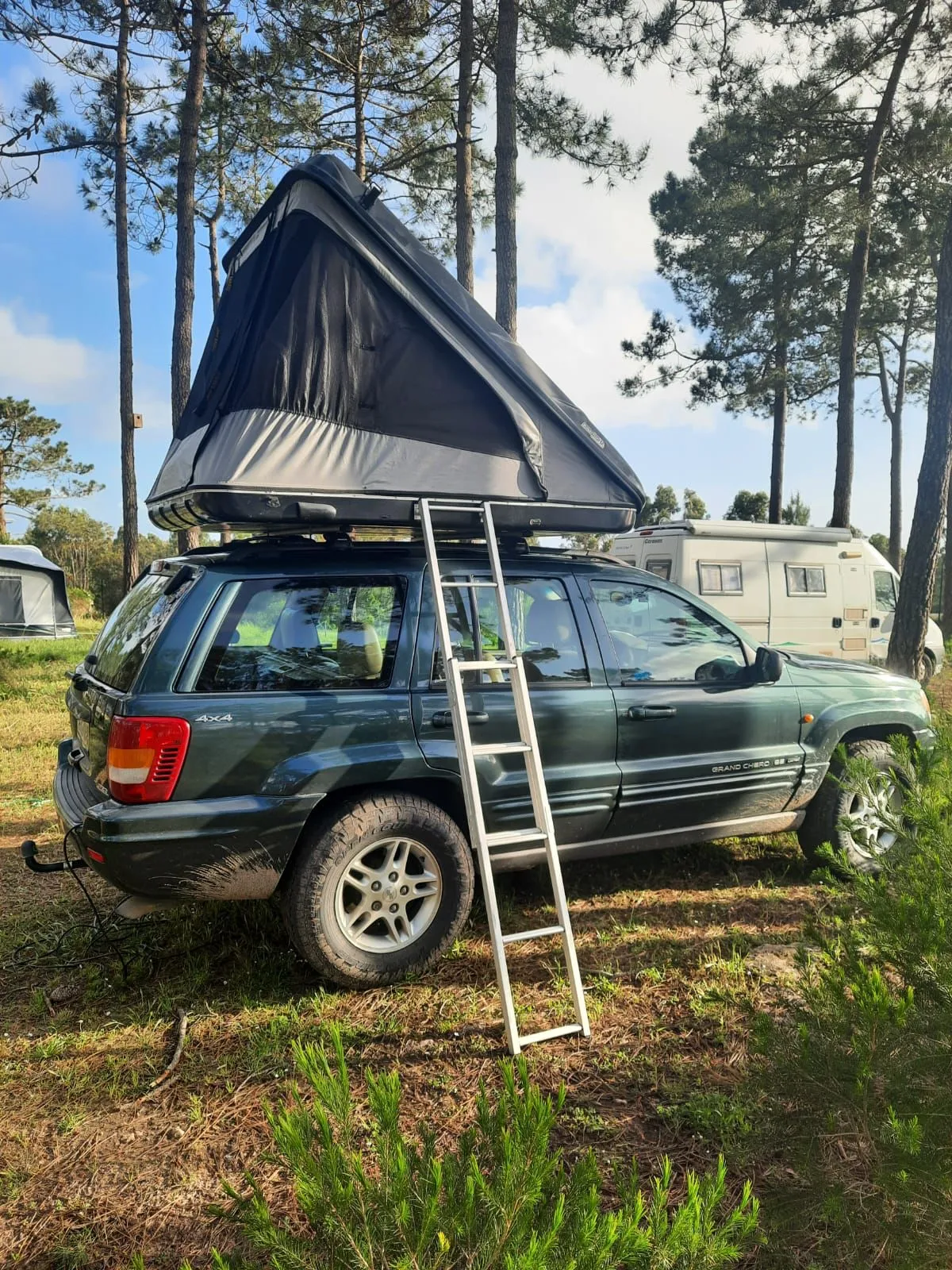 Incluímos a tenda de tejadilho, escada, colchão, e suporte técnico durante a tua viagem. Outros acessórios (como fogão a gás + gás, mesa, cadeiras, luzes, utensílios de cozinha, etc..) podem ser alugados à parte.